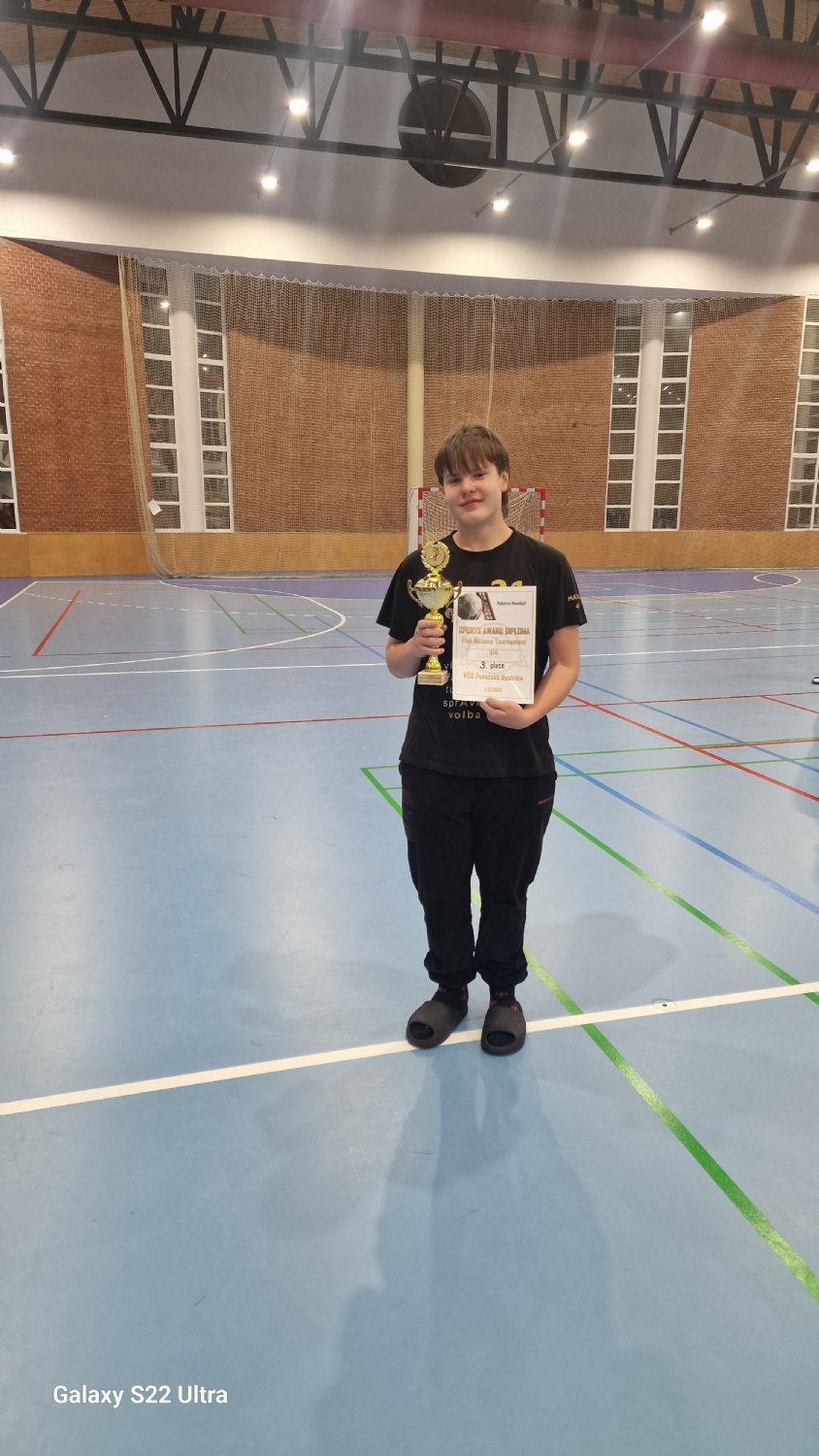 Brankár nášho družstva Marko Kľúčik s pohárom i diplomom za 3. miesto
